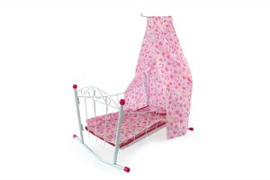 Kovová postýlka pro miminko max velikosti 38 cm. Postýlka je s nebesy, slabou peřinkou malým polštářkem.