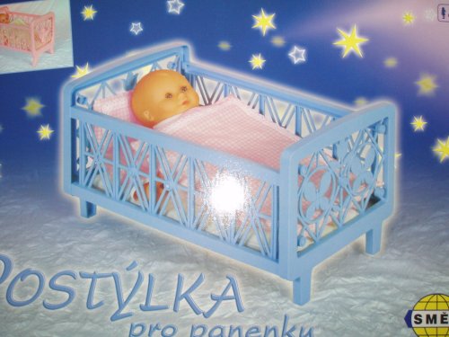 Plastová postýlka pro panenky bez soupravy. Rozměr 32x47x26 cm v krabici. Vhodné od 3 let.
