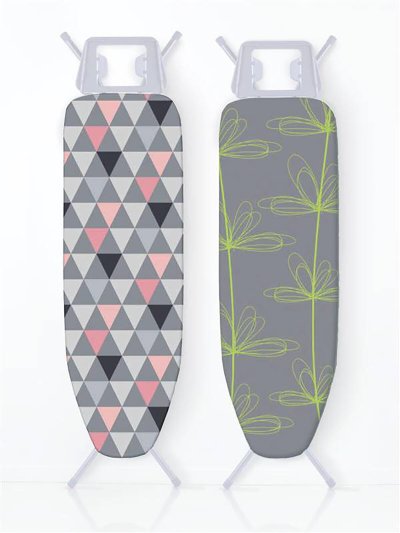 Metalický povrch potahu odráží teplo, čímž urychluje žehlení. Upevnění potahu k prknu pomocí stahovacího provázku.