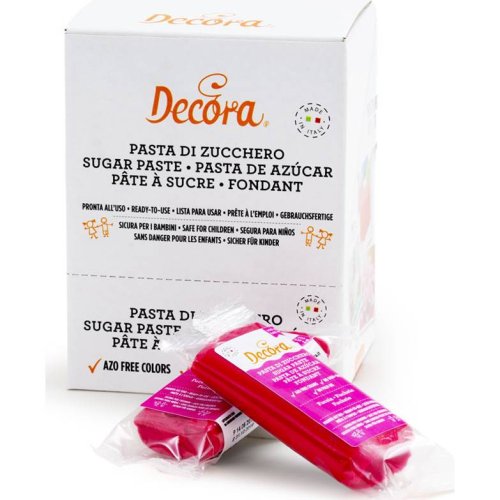 Fuchsiová hmota na potahování dortů i připravování ozdob. 100 g balení.