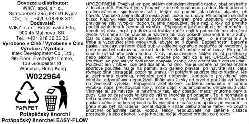 Šnorchl je vybavený spodním ventilem pro odtok vody, horním ventilem pro snížení možnosti vniknutí vody, silikonovým náústkem a klipem pro uchycení k masce. Rozměr balení: 18,5 x 47 cm Vhodné od 8 let