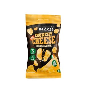 Sýrové krekry Mixit - kvalitní irský cheddar s jeho specifickou plnou chutí a usušený speciálním procesem, výsledkem je extra křupavý snack do kapsy plný bílkovin a vápníku Neobsahuje nic jiného než …