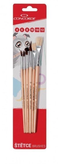 Sada 6-ti Natural štětců. Kulatý vlasový štětec č. 4, 6, 8, 10 a plochý štětinový štětec č. 10, 12.