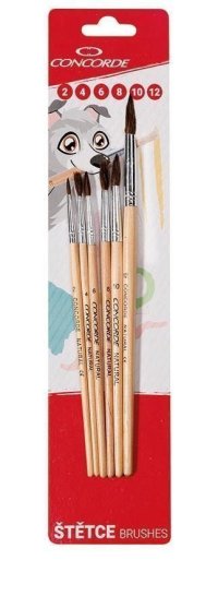Sada 6-ti Natural štětců. Kulatý vlasový štětec č. 2, 4, 6, 8, 10, 12.