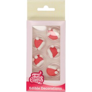 Cukrové vánoční zdobení Santovy čepičky. 12 ks v balení.