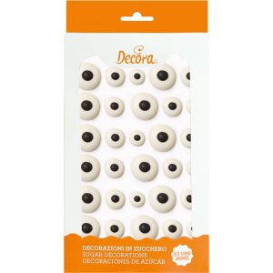 Cukrová dekorace ve tvaru očí pro dozdobení figurek či dortů a dalších zajímavých moučníků nejen na Halloween.