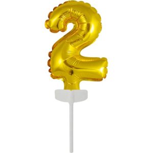 Fóliový balónek zlatý mini - zápich do dortu číslo 2.