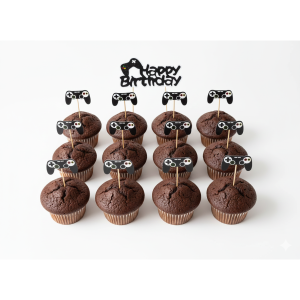 Balení dortových zápichů ve tvaru fotbalového míče, každý má průměr cca 2 cm.