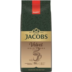 Pražená zrnková káva Jacobs - Velvet Gold Crema Káva pražená zrnková balená v ochranné atmosféře vhodná pro kávové automaty a mlýnky na kávu Hmotnost: 1 kg Složení: Směs robusta a arabica Alergeny: …