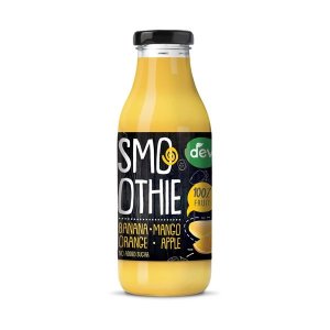 Ovocné smoothie DEVA vyrobené z kvalitního ovoce (banán, mango, pomeranč, jablko), bez přidaného cukru a s přidaným vitamínem C, vhodné jako lahodná svačina Je bezlepkové a vhodné pro vegany Pasterováno …