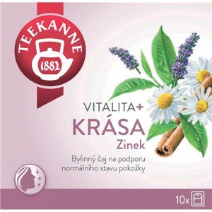 Bylinný čaj Teekanne Vitalita + krása obsahuje zinek, který podporuje zdraví pokožky a chrání ji před oxidačním stresem – ideální doplněk každodenní péče o krásu Balení obsahuje 10 nálevových sáčků po …