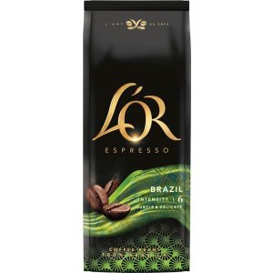 Zrnková káva L'Or Espresso Brazil 100% Arabica Jemná - ovocná - ořechová Ořechové tóny se prolínají s tony po zeleném ovoci a jemnými nádechy po rostlinách s nepatrným hořkým nádechem Krémový pocit v …