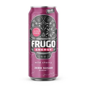 Sycený energetický nápoj Frugo Energy s příchutí divoké třešně, s přídavkem vitamínů a přírodního kofeinu Bez přidaného cukru, bez taurinu, se sníženým obsahem kofeinu Obsahuje extrakt z listů yerba …