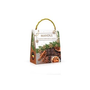 Výborné mandle v mléčné belgické čokoládě obalené ve skořici, balené v dárkové tašce.