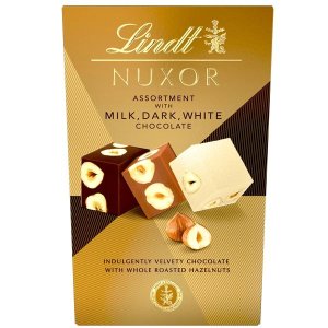 Směs Lindt Nuxor kombinuje tři lahodné druhy v jednom balení: bílou čokoládu, mléčnou Gianduja a hořkosladkou čokoládu Gianduja Exkluzivní pochoutka - každá pralinka je vyrobena z jemné čokolády a obsahuje …
