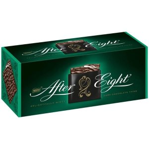 Hořká, jednotlivě balená čokoláda s peprmintovou náplní Ukončete svou dnešní večeři stylově… s After Eight Hmotnost: 200 g