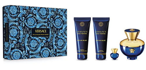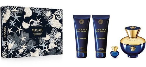 Versace Pour Femme Dylan Blue je květinově-ovocná vůně pro ženy. Hlavu tvoří černý rybíz, jablko odrůdy Granny Smith, jetel, pomněnka a perila neboli list shiso. Srdce se skládá z růže, jasmínu, šípku, broskve a petalie. V základu ucítíte bílé dřevo, pižmo, pačuli a sturač. Na trh byla uvedena v roce 2017. Výběr dárkové sady je náhodný.