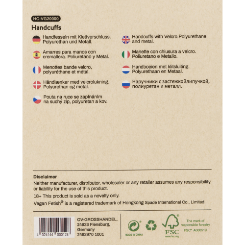 Skvěle zpracovaná pouta na ruce, který jsou 100% veganská bez použití živočišných materiálů. Pouta jsou odjímatelná, nastavitelná a velmi pohodlná.