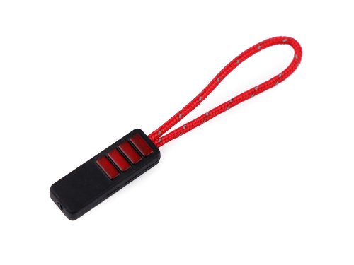 Poutko slouží k pohodlnému uchycení jezdce na zipu. Skládá se z plastového táhla a polyesterové šňůrky. Můžete ho pověsit také na klíče, mobil, tašku apod. Rozměry plastové části jsou 9 x 25 mm.