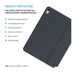 Svůj iPad na vnitřní stranu pouzdra jednoduše přichytíte pomocí magnetů, bude tak chráněný ze všech stran. S klávesnicí ho pohodlně propojíte pomocí Bluetooth. Velkou výhodou je možnost nastavení úhlu náklonu, a to od 65 ° do 125 °. Jistě oceníte také další šikovnou funkci – režim automatického uspání a probuzení (sleep and wake). Informace o stavu nabití si zobrazíte na LED displeji. Samozřejmostí je výřez pro fotoaparát v pouzdře.