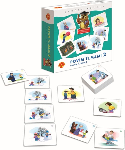 Pokračování úspěšné hry Povím, Ti mami. Obsahuje 40 obrázků na destičkách, ze kterých je třeba sestavit 10 logických příběhů.