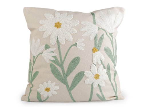 Povlak na polštář zdobí designová výšivka květin, bude se v interiéru vyjímat celoročně.