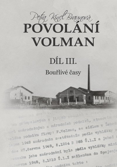 Závěrečný díl románu podle skutečných událostí o rodu Volmanů, zakladatelů významného podniku na obráběcí stroje v Žebráce a Čelákovicích, nás přenese do 50. a počátku 60. let minulého století. Zavítáme ovšem i hlouběji do minulosti, do období rakousko-uherského mocnářství, světových válek či hospodářské krize. A právě kvůli tolika převratným událostem, které naše předky v minulém století potkaly, tato část nese podtitul „Bouřlivé časy“. Na pozadí pohnuté historie opět ožívá silný příběh členů rodiny a povolání se mnohdy stává jediným ostrůvkem světla v temnotě. <br> Děj vychází z archivních dokumentů, kroniky továrny sepsané Otakarem Volmanem, ale také autentických záznamů a dopisů, které se v rodině zachovaly a některé jsou přímo citovány. Nechybí fotografická příloha.