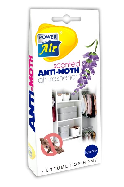 POWER AIR Odpuzovač molů Anti-Moth je účinný bojovník proti šatním molům. Účinná látka, geraniol, pozvolně uniká do prostoru a efektivně působí proti šatním molům. S přírodní vůní levandule.