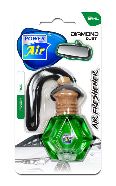 Osvěžovač POWER AIR Diamond Dust 9 ml je kapalinový osvěžovač vzduchu k zavěšení do volného prostoru. Osvěžovač je ve skleničce ve tvaru diamantu, má dřevěné víčko.