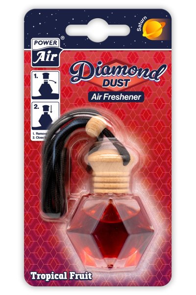 Osvěžovač POWER AIR Diamond Dust 9 ml je kapalinový osvěžovač vzduchu k zavěšení do volného prostoru. Osvěžovač je ve skleničce ve tvaru diamantu, má dřevěné víčko.