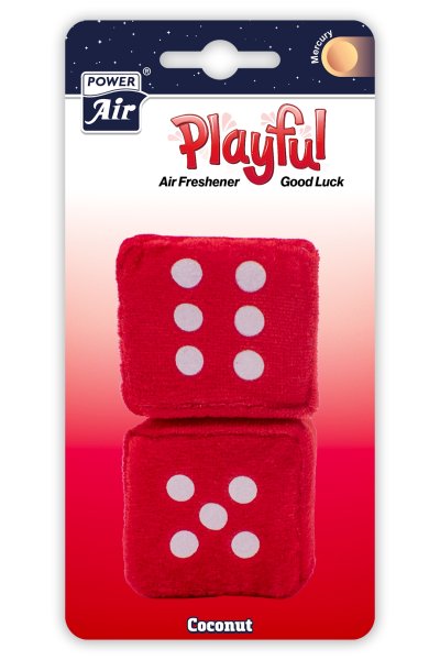 Dekorativní plyšový osvěžovač POWER AIR Good Luck v podobě hracích kostek k volnému zavěšení do prostoru.