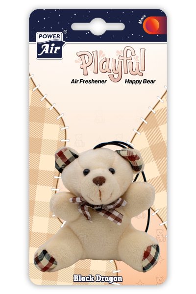 Dekorativní plyšový osvěžovač POWER AIR Happy Bear v podobě medvídků k volnému zavěšení do prostoru.K dispozici v světle béžové, hnědé a růžové.Všechny motivy spojuje svěží vůně Black Dragon, která provoní …