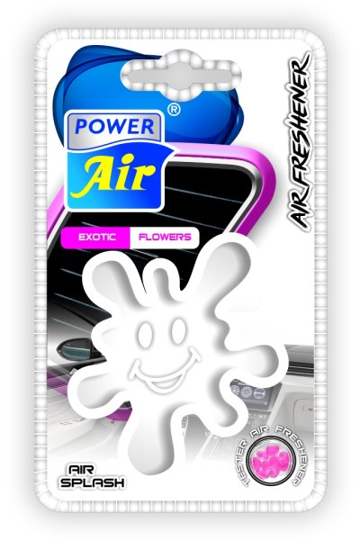 Stylový osvěžovač vzduchu POWER AIR Splash do mřížky ventilátoru aut je vyroben z "chytrého" plastu s postupným a dlouhotrvajícím uvolňováním vůně do interiéru auta.