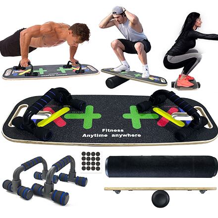 Multifunkční balanční deska Merco Power Core je skvělá tréninková pomůcka pro sportovce, u kterých je důležitá rovnováha. S tímto setem si vytvoříte domácí trénink dle svých potřeb. Cvičení na balanční desce pomáhá při rehabilitaci kolen, kotníků, kyčlí. Posílíte okolní svaly, čímž snížíte riziko zranění těchto kloubů. Vrchní strana balanční desky je potažená protiskluzovou vrstvou. Válec balanční desky lze používat i v interiéru, bez nutnosti použití koberce. Sada dále obsahuje posilovací tyč s gumovými expandery různých odporů, opěrky na kliky, posilovací kolečka, kotvu do dveří a rukojetě. Kotva a rukojetě s použitím gum rozšiřuje variabilitu cvičení. Vytvořte si kompletní trénink a zlepšete si svou fyzickou kondici v pohodlí domova s multifunkční balanční deskou Merco Power Core! - maximální nosnost: 120 kg - hmotnost balení: 6,3 kg - rozměry balení: 76 x 30 x 15 cm - doporučený věk: 9+ - rozměr desky: 74 x 28 x 2 cm (délka x šířka uprostřed x tloušťka) - rozměr válce: 53 x 10 cm (délka x průměr) - hmotnost desky: 2,35 kg - hmotnost válce: 1,2 kg - válec opatřený měkkým filcem - součástí 4 nožičky pro montáž na spodní stranu desky pro stabilitu - 3 sady gumových expanderů - opěrky na kliky - posilovací kolečka s průměrem 15,5 cm - dveřní kotva pro uchycení expanderů - pěnové rukojetě - poutko pro uchycení na dolní nebo horní končetinu - součástí vak pro snadné přenášení a uskladnění