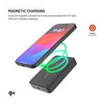 Powerbanka využívá moderní technologii Qi2, která umožňuje bezdrátové nabíjení s výkonem až 15 W. Díky integrovaným MagSafe magnetům se automaticky zarovná s kompatibilními telefony a zajistí efektivní přenos energie bez nutnosti kabelu.