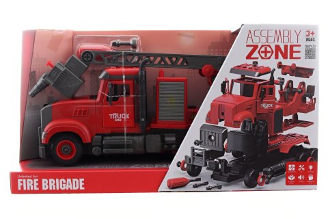 Rozkládací šroubovací požární auto na baterie. Napájení na 3xAG13 baterie - jsou součástí balení. Auto má 4 tlačítka s různými zvuky - startování, troubení, couvání, melodie. Balení obsahuje šroubovák. Auto je na setrvačník. Rozměry auta cca 36x17x8 cm. Rozměry balení 41x22x12 cm. Věk 3+