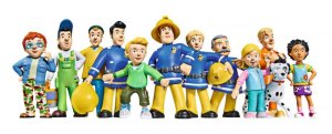 Figurka požárníka Sama a dalších postav z oblíbeného dětského seriálu Požárník Sam.