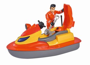 Vodní skútr z oblíbeného seriálu Požárník Sam, který může plavat. Pod sedadlem přihrádka pro uložení příslušenství. Figurka Elvise v záchranářském obleku součástí.