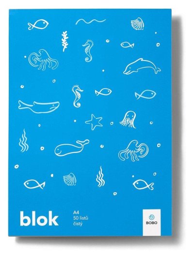 Velký poznámkový blok A4 s ručně kreslenými motivy mořského světa je určen pro rychlé poznámky, kresby nebo náčrty. Obsahuje 50 čistých listů. <br> <br>Poznámkový blok pro děti s motivem moře je vhodný pro školní zápisky, rychlé kresby, rozepisování nebo čmárání. Velikost A4 se vejde do každého batůžku nebo aktovky. Ponořte se do hlubin tvoření. <br> <br>Poznámkový blok Svět A4 <br>• Formát: A4 <br>• Počet listů: 50 <br>• Papír: 70 g <br>• Lineatura: Čistá <br>• Vazba: Lepená