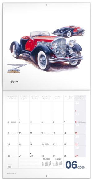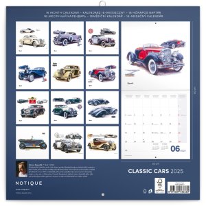 Dvanáct unikátních a do detailu propracovaných kreseb starých automobilů v podání světoznámého malíře Václava Zapadlíka. Potěší nejen sběratele, ale i milovníky veteránů. Kalendář obsahuje přehledné kalendárium od září 2024 do prosince 2025 v šesti jazycích, fáze měsíce, důležité svátky a prostor pro poznámky na každý den.