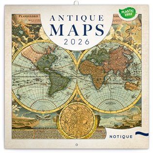 Dvanáct ilustrací starých map v praktickém poznámkovém kalendáři. Kalendář obsahuje přehledné kalendárium od září 2025 do prosince 2026 v osmi jazycích, měsíční fáze, důležité svátky a prostor pro poznámky na každý den. Kalendář je součástí kolekce Plastic Free, je zabalený v obálce z recyklovaného papíru a vytištěný na recyklovaném strukturovaném papíře s vysokou gramáží.