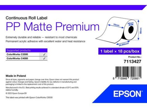 PP Matte Label Premium, Cont. Roll, 76mm x 29mm - VÝPRODEJ