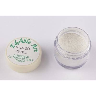 Prachová barva Silver snow od Edable Art pro snadné malování jedlých dekorací a motivů.