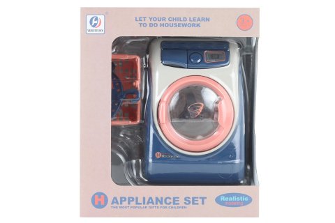 Plastová pračka na baterie vydává zvuky. Po zapnutí se spustí zvuk napuštění vody, poté se začne buben pračky otáčet. Baterie nejsou součástí (napájení 2 AA). Rozměry pračky cca 15 x 9,5 x 8 cm. Rozměry balení cca 17 x 20 x 9,5 cm. Věk 3+
