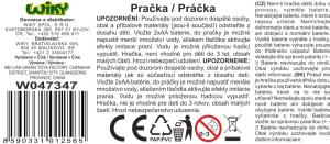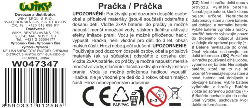 Pračka s efekty. Velikost 14 cm. Baterie 2xAA nejsou součástí balení. Přesné rozměry 10x9x14 cm.
