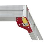 Po odklopení noh pracovní plošiny G21 Work Station se samy zajistí 2 závlačky jistícího mechanismu na obou stranách plošiny. Po sklopení noh je potřeba tyto závlačky palci rukou odjistit.