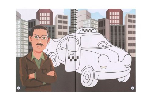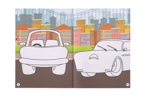 Spousta zábavy při nalepování a doplňování autíček. Formát A4.