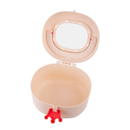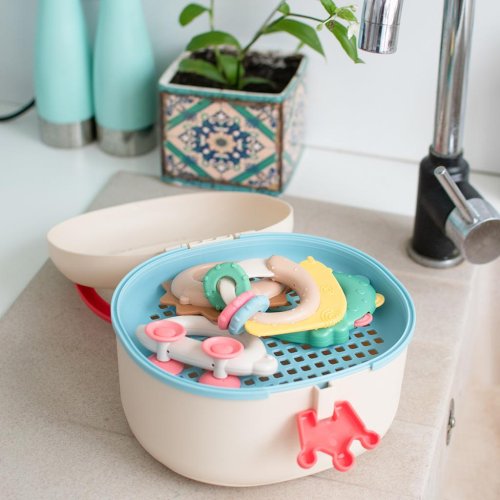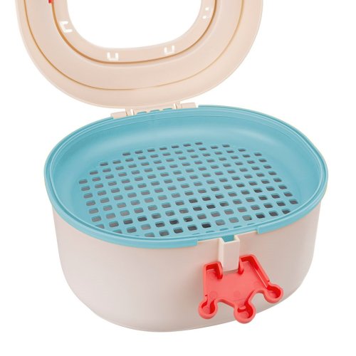 - Uvnitř je speciální mřížka, která na jedné straně umožňuje sušit hračky po umytí, na druhé straně může sloužit jako sítko na prosévání písku při hře na pískovišti