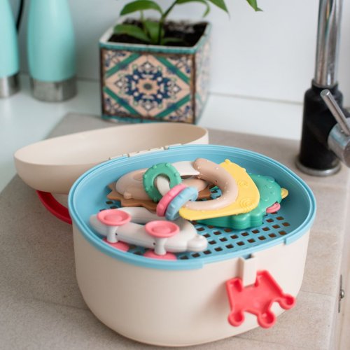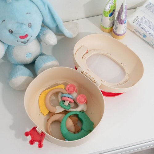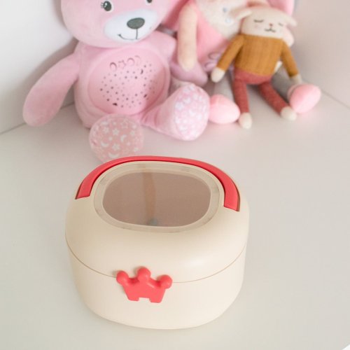 Ideální pro uložení chrastítek, kousátek a drobného příslušenství. Speciální praktický klip ve tvaru korunky zaručuje těsné uzavření.