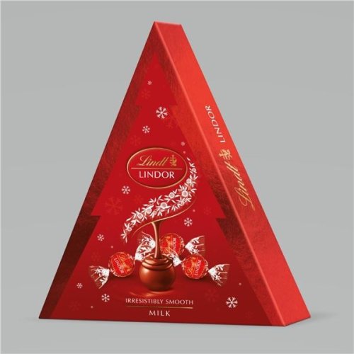 Dárková krabička ve tvaru stromečku s jemnými pralinkami z mléčné čokolády